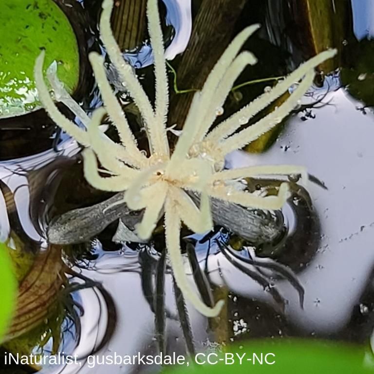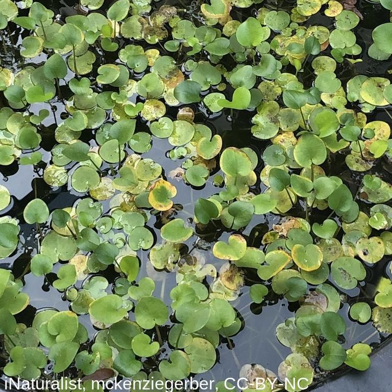 Family: Hydrocharitaceae Scientific name: Limnobium spongia Description: Plant Form: Perennial mat-forming aquatic herb. Size: Up to 50 cm above surface of mud or water. Stem: Short stems branched with leaves, and longer leafless stems with daughter plants at ends. Leaves: Bright green shiny, thick, leathery, up to 10 cm long, oval or heart-shaped with pointed tip. Young leaves circular disk with spongey underside. Flowers: White, greenish-white or yellowish, 13 mm long. Fruit and Seeds: Fleshy berry-like capsules 4-18 mm long, with up to 200 tiny, bristled seeds. Habitat: Lakes, ponds, swamps, wetlands. Distinguishing Features: Larger fruit and pointed tipped leaves compared to Frogbit (Limnobium laevigatum). Weed Status: Priority Weed Weed Type: Environmental, Invasive Garden Escapee Lifeform: Aquatic