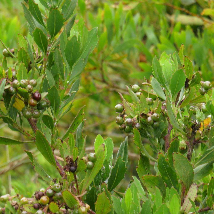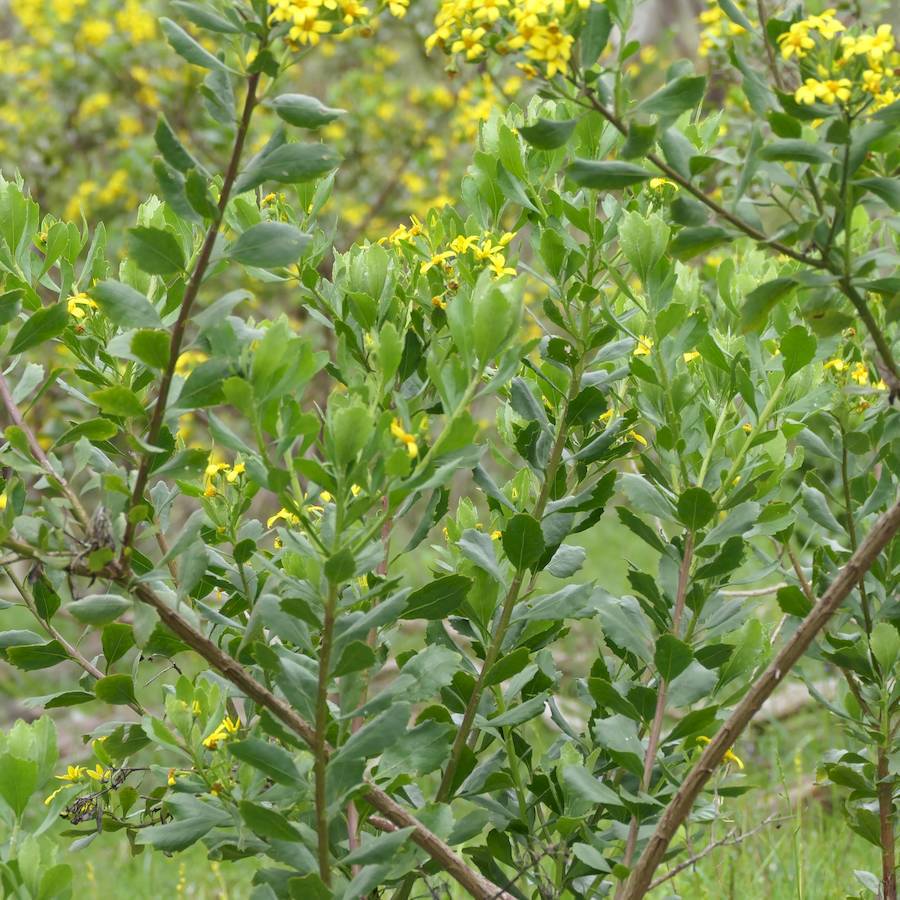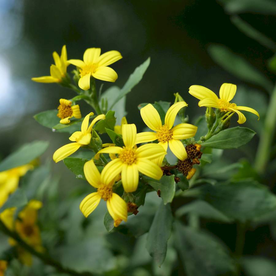 Family: Asteraceae Scientific name: Osteospermum monilifera subsp. monilifera Description: Plant Form: Shrub. Size: Up to 3 m tall. Stem: Woody, branched, finely hairy when young. Leaves: Oval shaped, alternate, undivided, narrowing towards base, leathery, and with irregular toothed edges. Flowers: Yellow daisy-like flowerheads 1-3 cm across with 4-8 petals in clusters at the end of branches. Fruit and Seeds: Fleshy, blackish when ripe, round, 6-8 mm in diameter. Containing a single whitishs smooth seed. Habitat: Coastal scrublands, old gardens, dunes, woodland, rainforest. Distinguishing Features: Round fruit and toothed leaf margins toothed compared to Bitou bush (Chrysanthemoides monilifera subsp. rotundata). Weed Status: Priority Weed Weed Type: Environmental, Invasive Garden Escapee Lifeform: Herbaceous, Shrubby