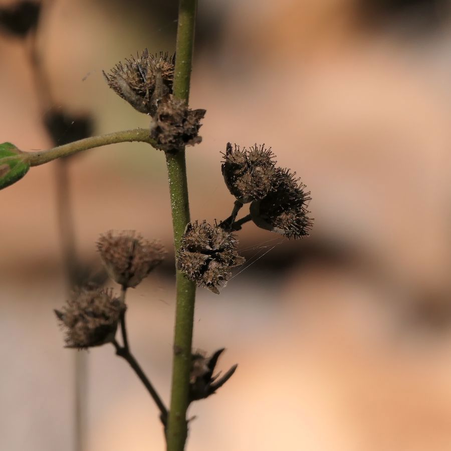 Family: Malvaceae Scientific name: Urena lobata Description: Plant Form Upright herb or small shrub. Size Up to 3 m tall. Stem Green and hairy when young, becoming woody with age. Leaves Egg-shaped, often with 1 or 3 lobes, 4-10 cm long. Both sides hairy, the underside being more so. Flowers Showy pink, with 5 petals and a tubular centre. About 2 cm across. Fruit and Seeds Round and slightly flattened dry fruit, slighly hairy and with numerous hooked spines which attach to fur or clothing. Contain kidney-shaped brown seeds. Habitat Swamps, forest edges, urban bushland, roadsides, waste areas. Sometimes regarded as native in parts of northern Australia. Weed Status: Other Weed Weed Type: Environmental Lifeform: Herbaceous, Shrubby