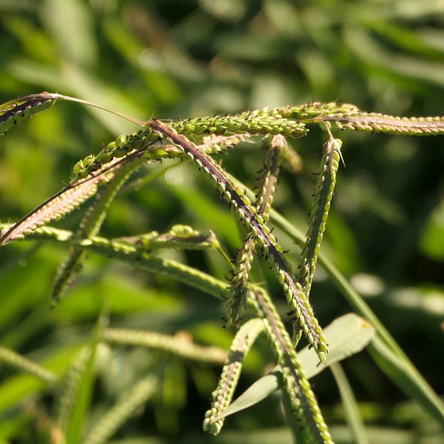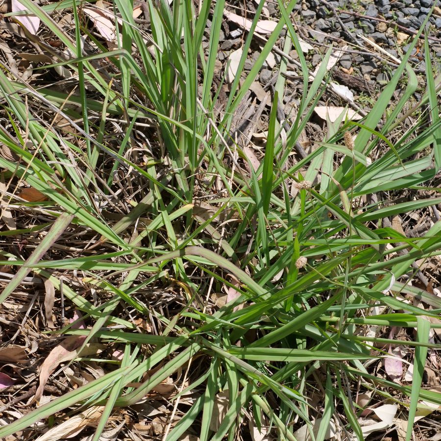 Family: Poaceae Scientific name: Paspalum dilatatum Description: Plant Form Grass with leafy shoots at base Size Up to 2 m tall Leaves Rolled in bud, flat when mature, 0.3-1.2 cm wide, mostly hairless Flowers Paired nodding cylindrical green flower-heads which are 3-12 cm long, with many deep-black individual flowers, base of flower-head with long silky hairs Habitat Widely grown in pastures and lawns, common elsewhere Weed Status: Other Weed Weed Type: Common Lifeform: Grassy