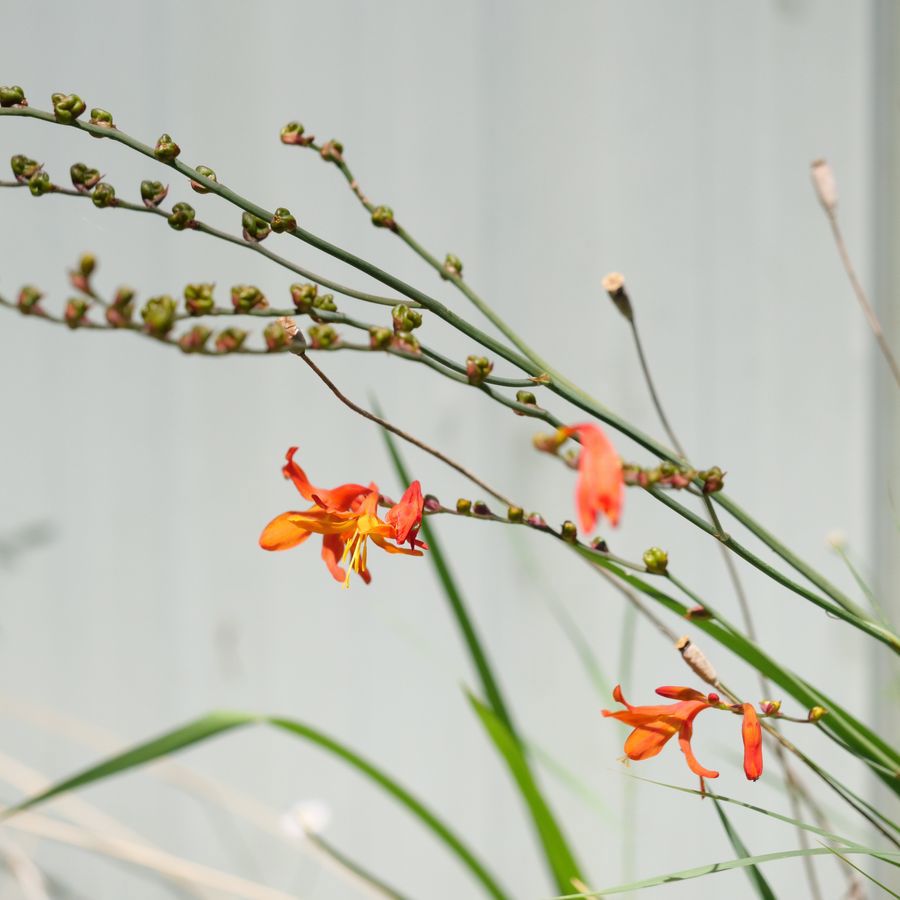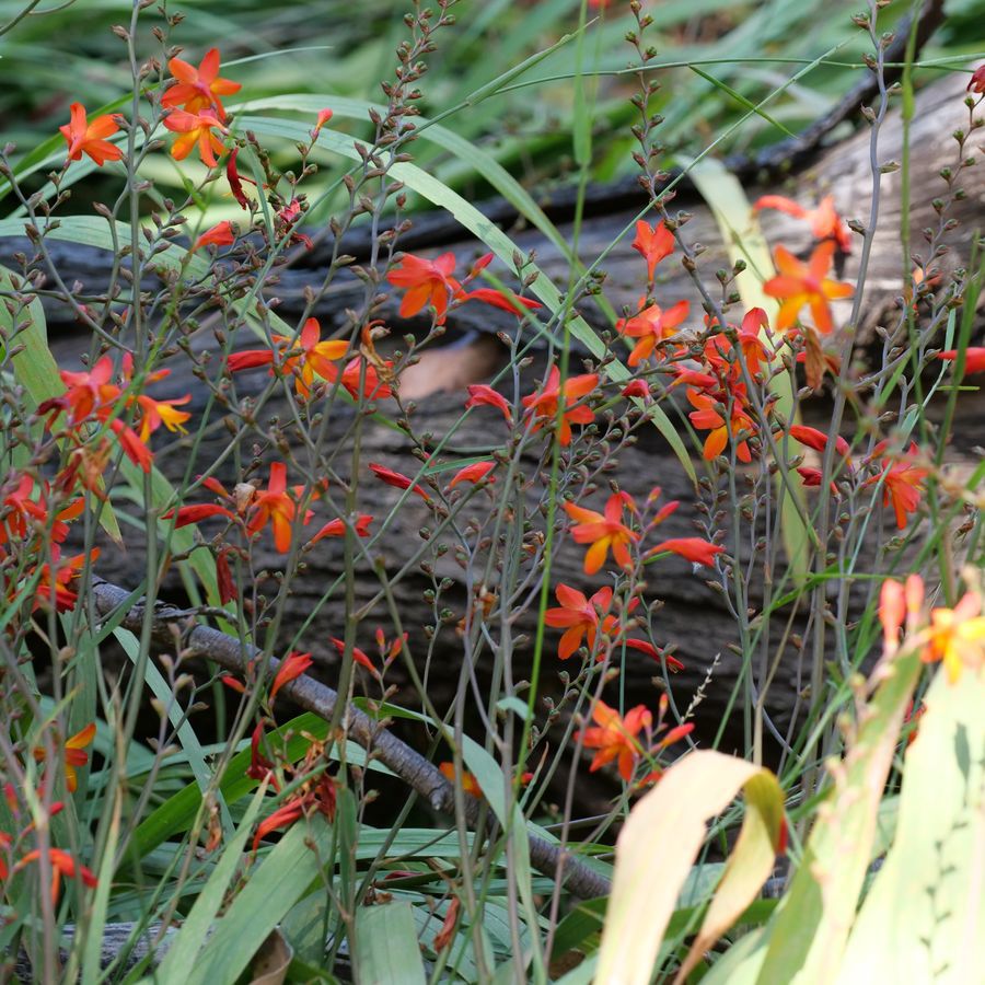 Family: Iridaceae Scientific name: Crocosmia x crocosmiiflora Description: Plant Form Herbaceous, clumped and almost grass-like Size 30-100 cm tall Stem Leaves 30-80 cm long, 1-2 cm wide, strong midvein Flowers Flower stem cylindrical, ending in a 4-20 flowered flower spike, flowers reddish orange, tube curved downwards and 1.2-1.8 cm long, six narrow petals Fruit and Seeds Capsule 0.7-1.0 cm wide, containing six seeds, red-brown and usually shriveled Habitat Weed of disturbed areas and coastal areas but can spread into forests Weed Status: Declared Weed Weed Type: Environmental, Invasive Garden Escapee Lifeform: Herbaceous